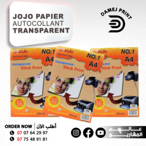 JOJO Papier autocollant transparent A4 de haute qualité Idéal pour l’impression jet d’encre et les créations professionnelles (50 feuilles0